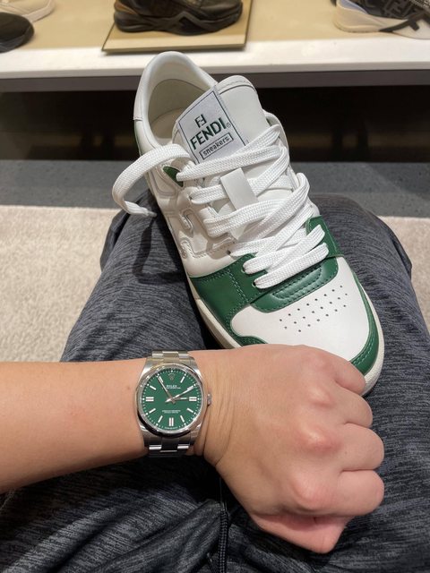 之後陪太座去fendi買鞋,發現一雙綠色的跟手錶很搭,就一起入手了,人生第一次因為單品有配色而感到開心