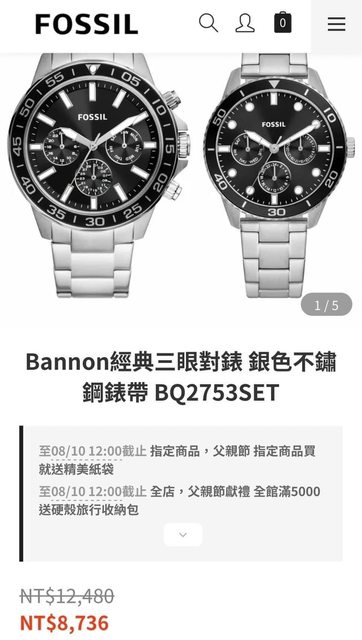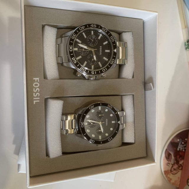 標題[賣錶] Fossil Bonnon 經典三眼對錶-銀色不鏽鋼