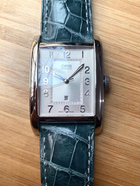 商品:Oris銀白面鋼帶方形機械錶