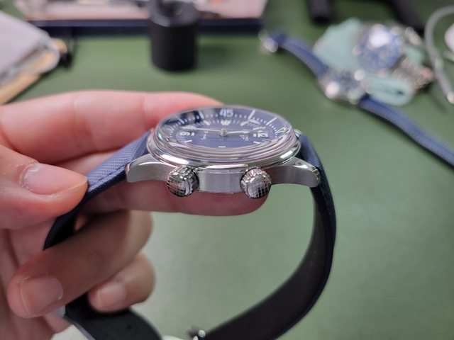 這次選的是藍色面盤加上米粒帶的版本,店裡看兩種顏色都不錯,藍色有種漆面質感,有