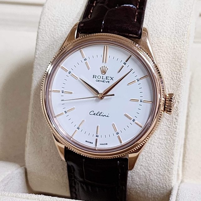 【售】:ROLEX 勞力士 50505 徹里尼系列 18K永恆玫瑰金材質 白色面盤 大三針顯時 自