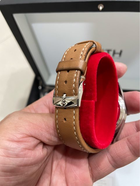 說明:經典計時機芯,配戴舒適,煙燻色面盤配上褐色皮錶帶既運動又不失優雅,由於買