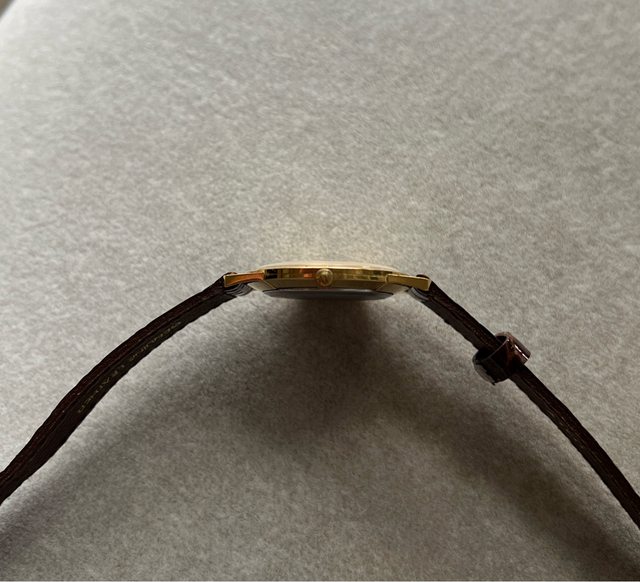 2.Universal手動上鏈機芯,1970年代生產,金色錶殼搭配淡淡奶油色面盤,二針羅馬時