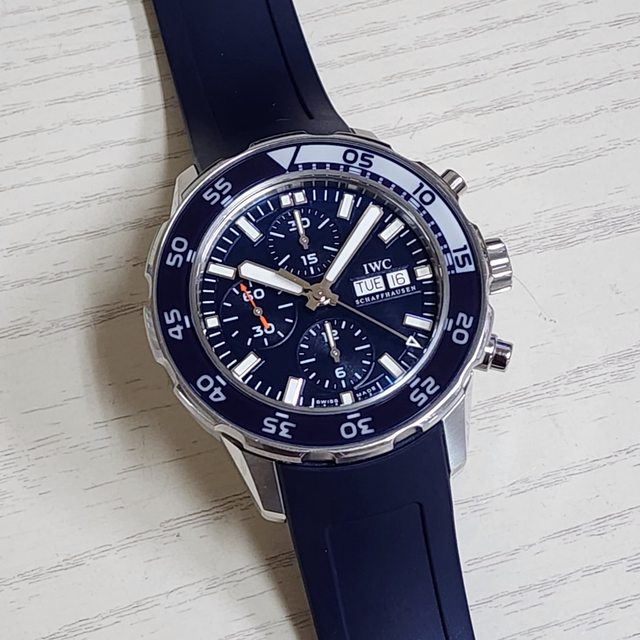 【售】:IWC 萬國 IW376711 海洋系列 藍白雙色旋轉錶圈 藍色面盤 日期星期 顯示 計