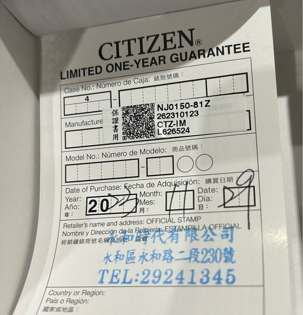品牌名稱:星辰 NJ0150-81Z
