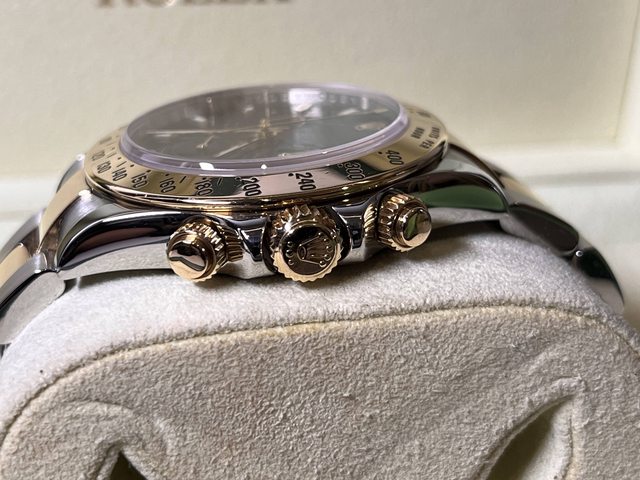 其他說明:M字頭黑面半金Daytona,已包膜(IRT),而且送全新未裁切的RUBBER B錶帶(價值7000+),夏天也可以變換風格,半金黑迪今年官網售價70萬2000元,這價位自用投資兩相宜,價格可以小議,瑕疵狂人、大刀俠客拜託勿擾,單純出售不交流,這隻錶在台北某實體錶店購買,目前還有保固一年,都有相關單據,自我能辨識者優先,也可配合RSC驗錶(但要收訂,驗過不退),照片中有特別拍出防偽內圈的序號及防偽雷標皇冠,絕對正品不用擔心!
