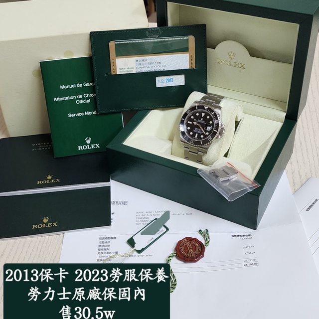 【配件】:勞力士內外錶盒,2013年台灣保卡,說明書,皮套,吊牌,12錶節目,2023年