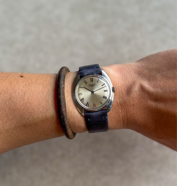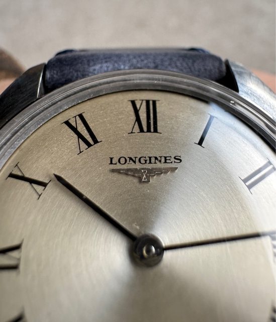 1. 浪琴手上鍊老錶,約1968年生產,羅馬數字時標,面盤同心圓紋路,經典428手上鍊機