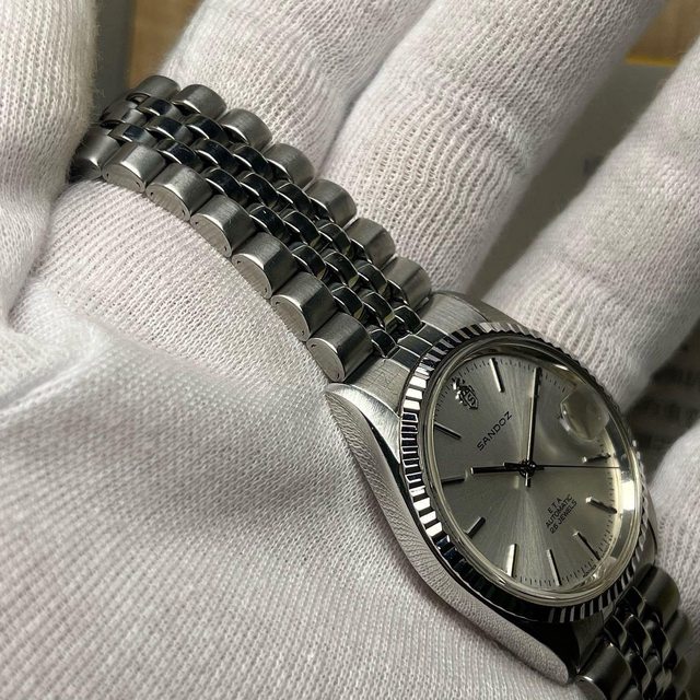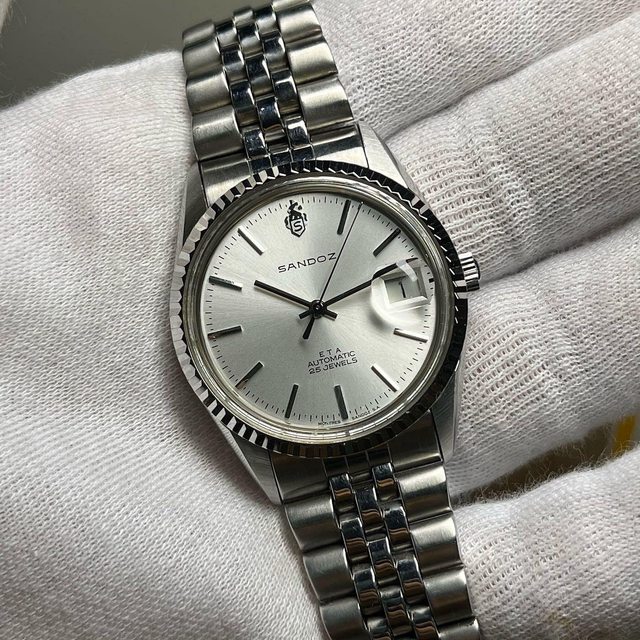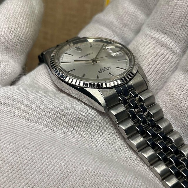 腕錶品牌:SANDOZ 腕錶型號:1777-D-70-2 販售價格:5500$不議價 腕錶附件:無 保卡日期:無 聯絡方式:0962-070-373 所在地區:雙北 物件總評:二手良品 其他說明: 瑞士ETA2824自動上鍊機芯 錶徑34.5,含龍頭36.5 原廠錶帶手圍約19-20公分 太陽圈狀況佳,無嚴重磨損 手錶有使用痕跡等,品相如圖
