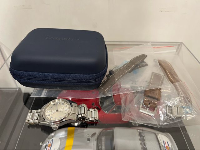 商品:浪琴先行者37mm,此款原廠為快拆皮帶款,另花費2500元訂製手工Horween快拆錶