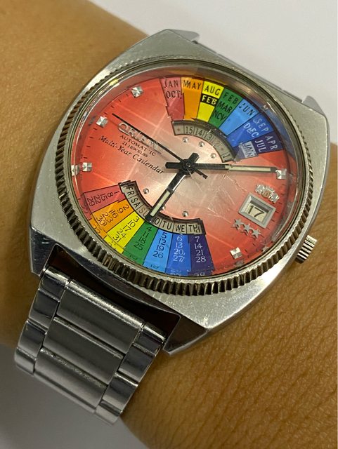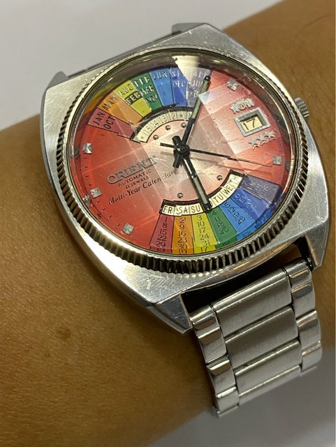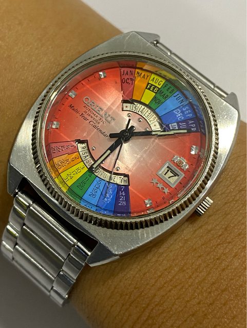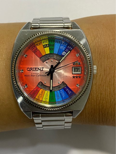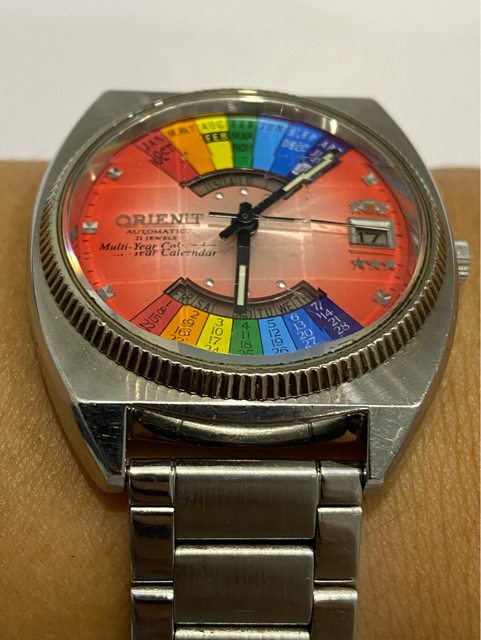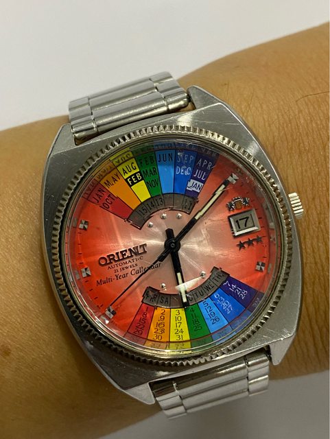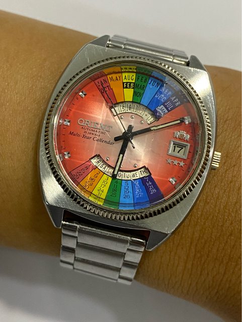 【商品名稱】東方-彩虹機械錶 【商品價格】2860元(含店到 【外觀等級】如圖 【附件】單錶乙顆,原廠錶帶 ————————————————— 型號EU04-C0 東方復古的彩虹面版,搭配多切面玻璃非常的吸睛 錶徑約37mm(不含龍頭) 走時正常 日期快調正常 —————————————————- 匯款後店到店,無面交服務