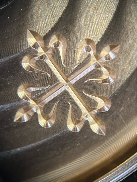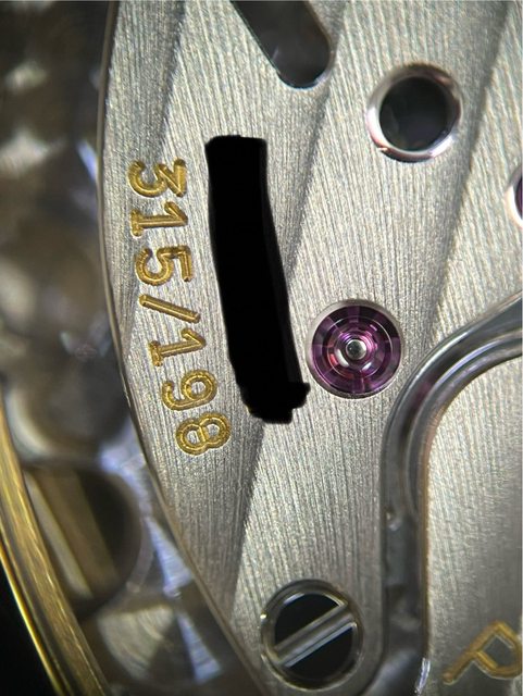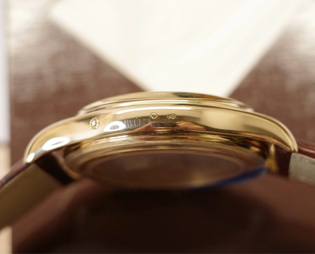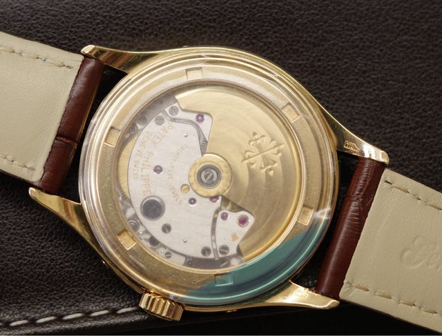 315/198背透機芯也能看到百達翡麗大大的Logo刻在K金自動盤上,基板刻有日內瓦印記