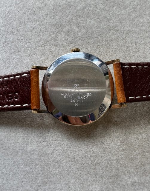 立體時標,近看很有層次,面盤些微氧化,14K包金(gold filled)外殼,已洗油保養,