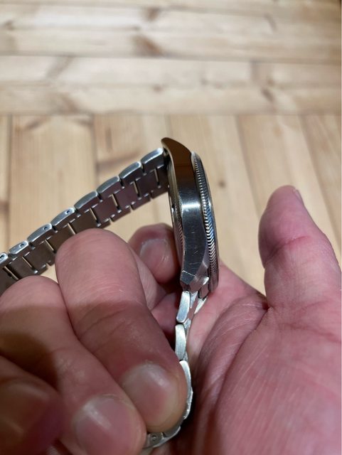 : 錶頭側邊有傷,錶耳內側有換錶帶的小痕,鋼帶日常配戴髮絲紋,主觀評價整體8.5~9