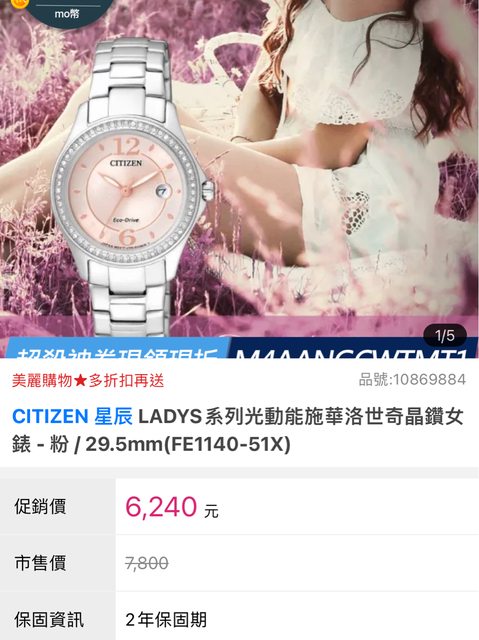 品牌名稱:CITIZEN 星辰 LADYS系列光動能施華洛世奇晶鑽女錶