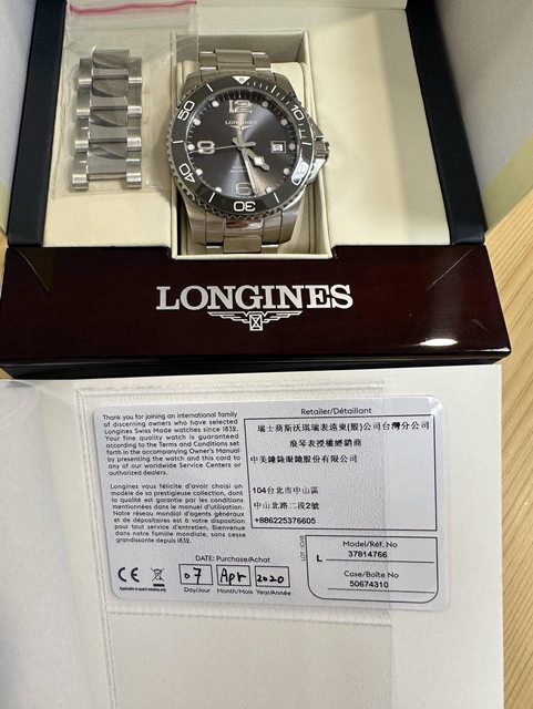隨附物件:完整盒裝、說明書、保固卡、剩餘錶節都在