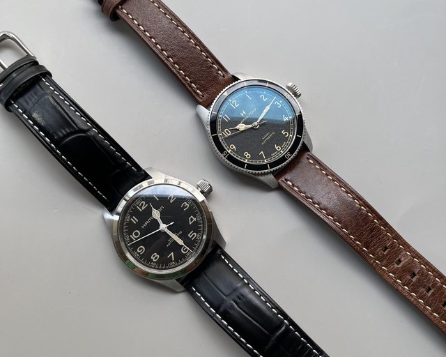 當時很喜歡這兩只卡其系列的復古黑、奶黃配色 而且都是38mm