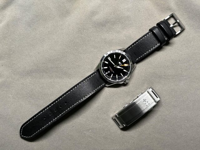商品描述:鏈帶款,錶體95成新,僅錶扣輕微使用細紋,不議價付沃坦手工牛皮錶帶
