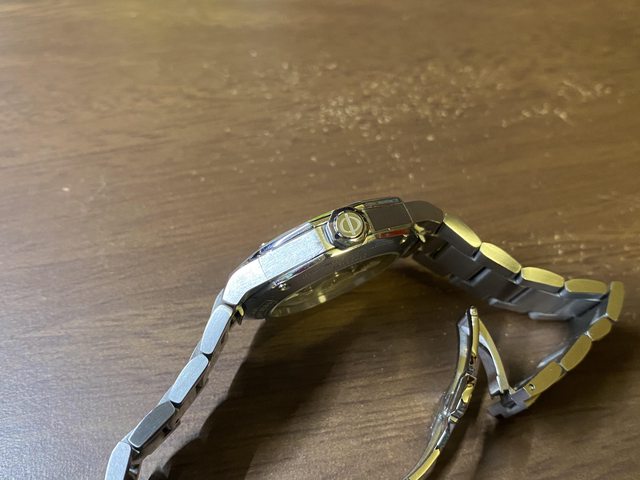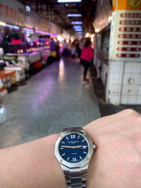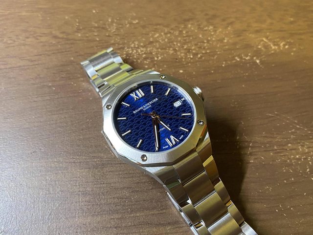 36毫米男女皆宜,腕圍17左右恰到好處,經典的多邊形、質感良好的一體式鏈帶,配上藍色