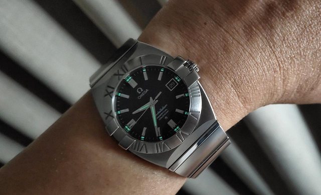 Omega歷代星座中,個人覺得這款雙鷹最美,因為它二側的爪是方的,指針也呼應方形,