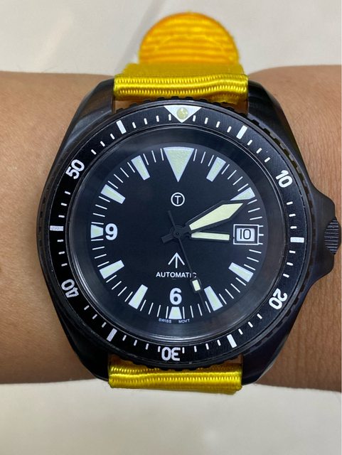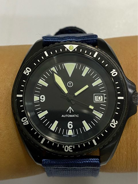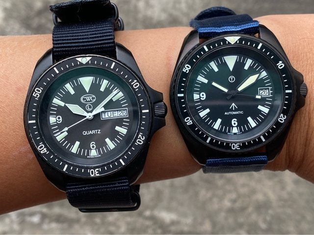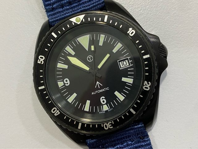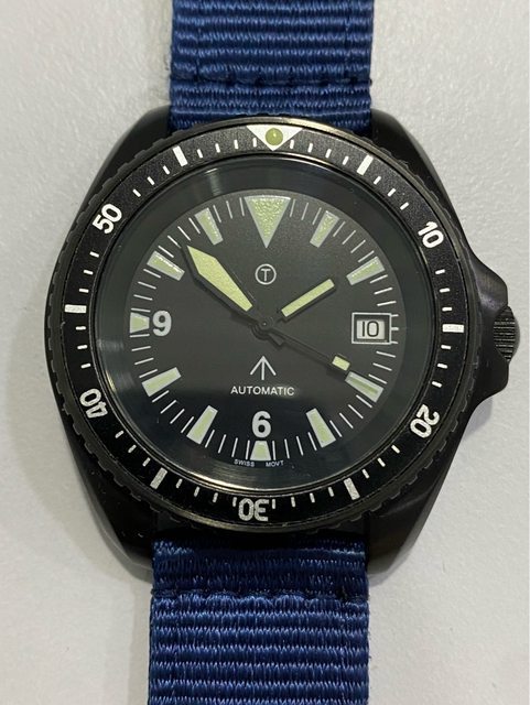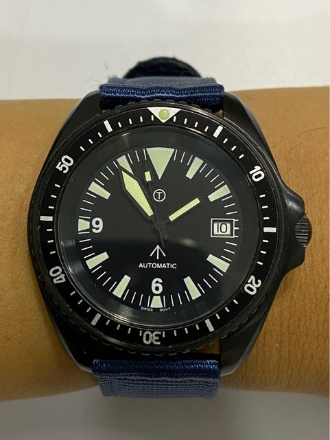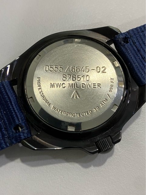 【商品名稱】MWC 軍錶 【商品價格】3500元(含店到 【新舊程度】外觀約9成新 【附件】單錶一顆,帆布錶帶*3 ————————————————— MWC 早期還在用ETA機芯時候的商品, 錶殼經過 PVD 處理,PVD 表面處理通常在特種 部隊、反恐部隊和各種秘密行動的軍事合約中指定,此款應該是致敬CWC 給英國舟艇特勤 團(Special Boat Service)配戴的手錶,現在的MWC auto 皆已更換 日本miyota機芯, 絕版美品,不議價。 外殼:不鏽鋼黑色不反光 PVD 錶冠:旋入式 防水性:30ATM/300m/1000ft 機芯:ETA2824 尺寸:寬度包含龍頭 45 mm 走時正常,換曆功能正常, 當日常生活上山下海的工具錶非常合適 —————————————————- 匯款後店到店,無面交服務