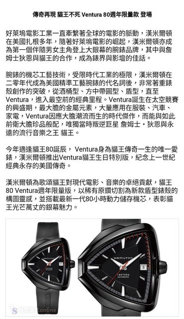 80周年,擁有80小時儲存動能,也是限量款,在Ventura獨特三角形的造型之下,再賦予