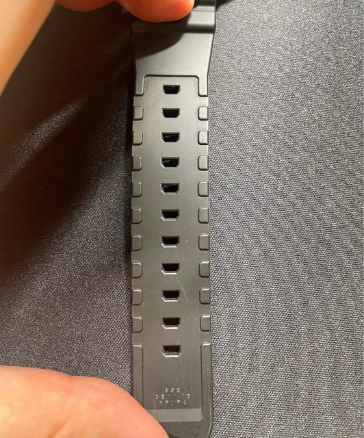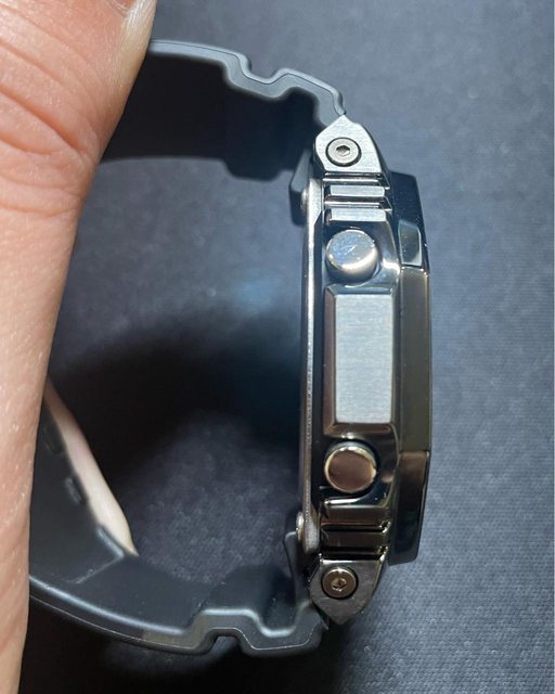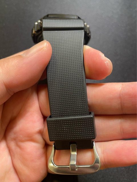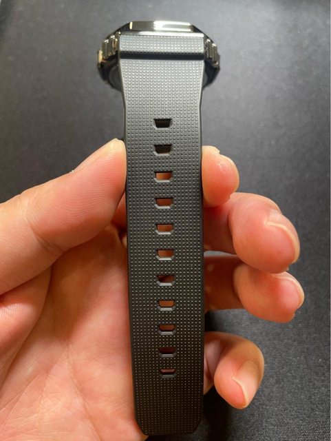 錶帶垂直往下收,小手腕也可以輕鬆配戴。金屬外框部分無磕碰,有正常使用細紋,橡膠