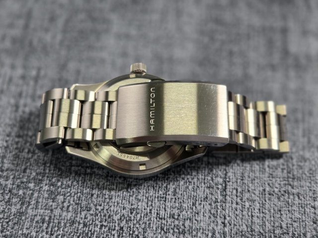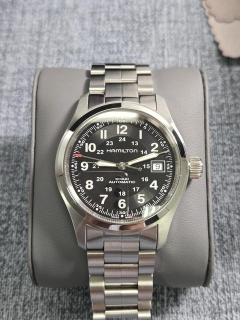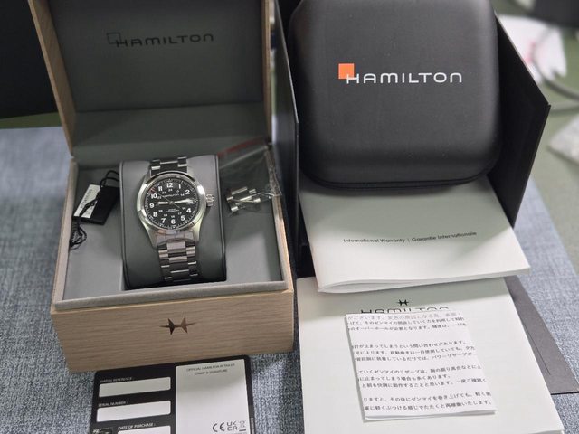 3. (售出)Hamilton khaki field auto 38mm 板上購入,正常使用細紋,走時精準。前一手約為2023/03購入,水貨空白保卡,附原廠 攜行盒,售11000含運