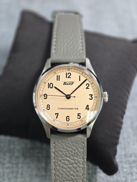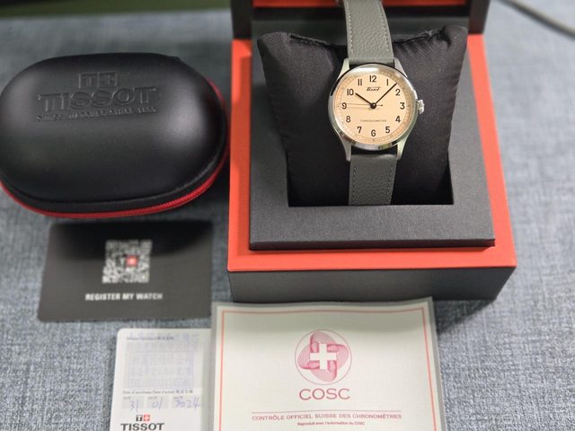 2. (售出)Tissot heritage 1938 COSC 鮭面 近全新,錶帶未使用,盒單全含COSC證書,附原廠攜行盒。2024/01保卡,售16000含運