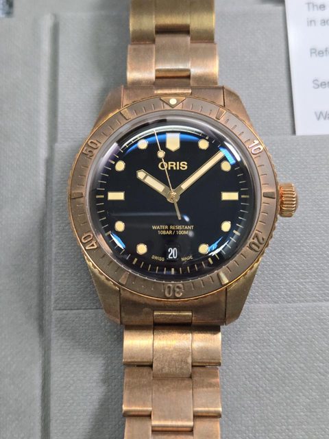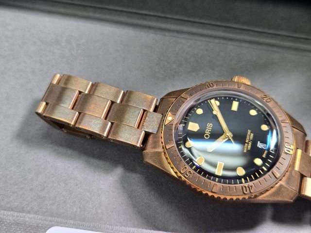 6. Oris Divers Sixty-Five Date Cotton Candy Sepia 專賣店款全銅diver 65,oris總算發現patina不適合粉色系。少配戴自然氧化,2023/12 購入,盒單全,售50000含運