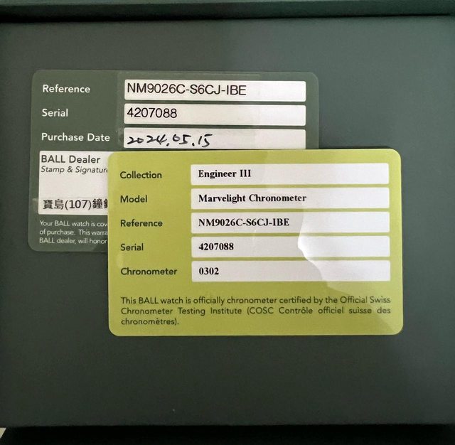 隨附物件:盒、單、剩餘錶節
