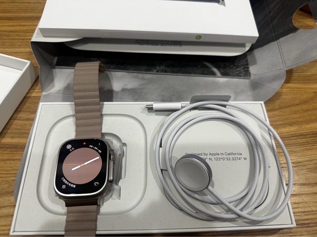 【出售商品】Apple Watch Ultra 2, 49mm, 鈦金屬 【商品規格】照片上的錶帶+原廠附的藍色海洋錶帶 【商品配件】盒裝完整 原廠充電線 【商品價格】25,000 【商品狀態】幾乎全新,只試戴過一次,覺得太大+太重不喜歡,保固到2025/3/2 【交易方式】新北三重蘆洲可面交 捷運站:橘線皆可面交 【聯絡方式】站內信