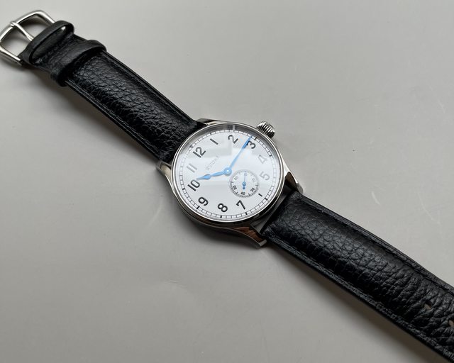 溫潤的白色面盤 小秒針面盤 搭配藍鋼大三針