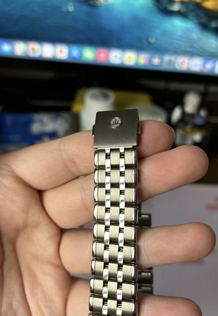 稀有的鈦合金版本的一體式錶帶款式,18k金圈