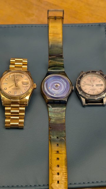 買了dd後一直很想跟以前自己的錶合照。也不知道為什麼小學時候的錶(戴了四五年以上哦)竟然還留著,只剩錶頭。國中最愛的一隻swatch也還留著(錶帶都脫皮了),當時應該是有點太空夢才選這一款。兩隻都不會動也應該無法修理了,但還是來張大合照下台一鞠躬。