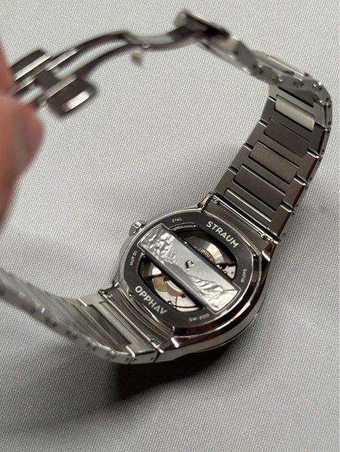 — 品牌名稱:Straum 手錶型號:Opphav 欲售金額:14500 (售出) 所在地:新竹 隨附物件:原廠盒、原廠錶帶(皮帶、精鋼鏈帶)、原廠攜行盒 版上購入,非常特別的錶盤,漸層煙燻黑 沒有保卡,原廠錶帶偏短,個人手腕約17cm剛剛好 原廠皮帶上手照