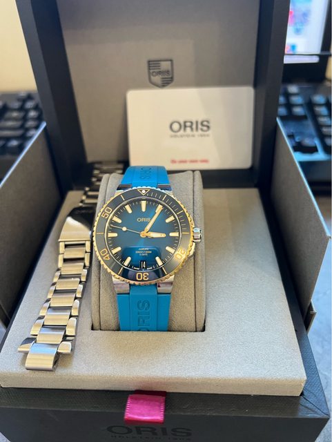 標題[賣錶] Oris時間之海藍18k金