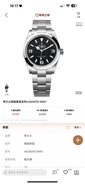 手錶型號:228235、276200、124700、278383、124270、224270、126300、126233、1266