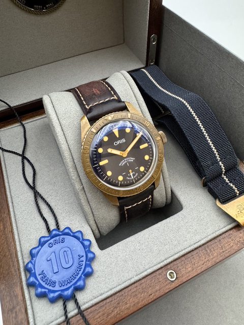 品牌名稱:Oris 型號: Carl Brashear Cal. 401 限量腕錶 0140177643185 錶徑:40 購買日期年份:2021 錶況:九八成新,台灣公司貨 欲售金額:$60000(訂價123000) 隨附物件:原廠盒,保證卡,說明書,原廠編織帶 備註:Oris 全新自製機芯,5日動力儲存 原廠10年保固,6點鐘位置小秒盤 青銅錶殼,手工編織錶帶