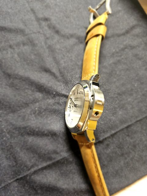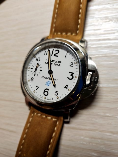 沛納海入門款,手上鍊,有經典護橋及小秒針設計,白面盤搭各種顏色錶帶都適合,整體