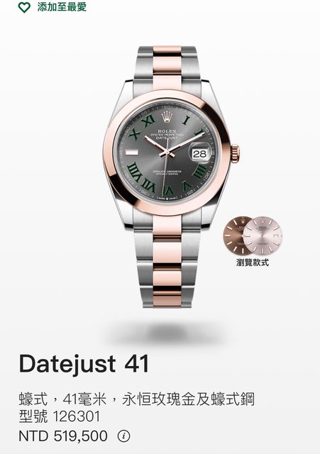 手錶型號:126301 DJ41玫瑰金 綠羅 費德勒同款