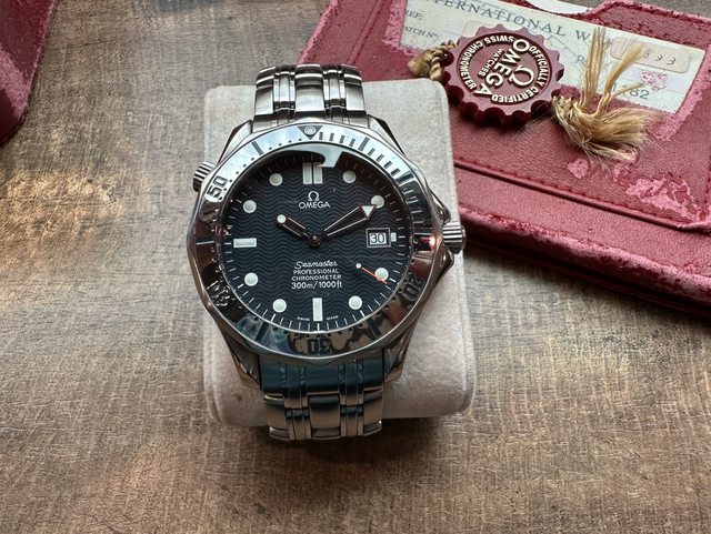 物件描述:41mm,2000年代(確切年份未知)vintage藍面海馬300米,9成新錶況良好品項佳,夠錶者贈送全新Omega旅行錶盒