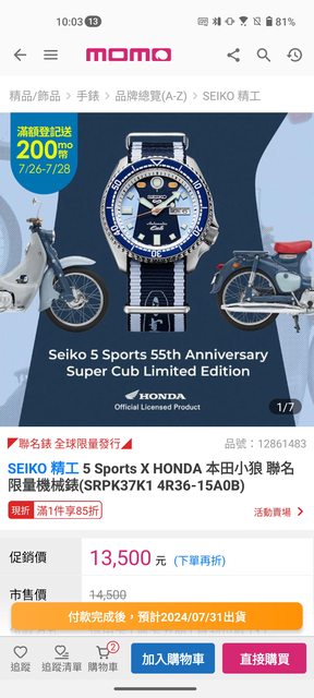 標題 [賣錶]降售 Seiko X Honda小狼聯名機械錶