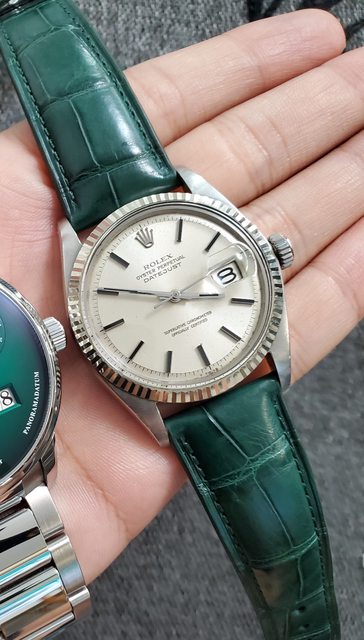深綠鱷魚皮錶帶一條