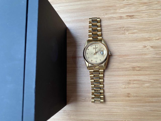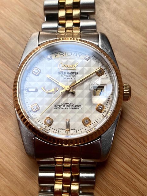 商品:Ogival愛其華金字塔紋白面18k半金蠔式機械錶