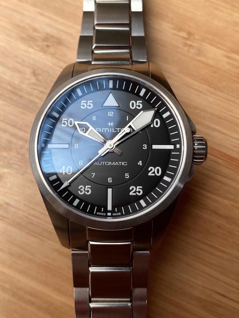 商品:Hamilton漢米爾頓36黑面飛行鋼帶機械錶