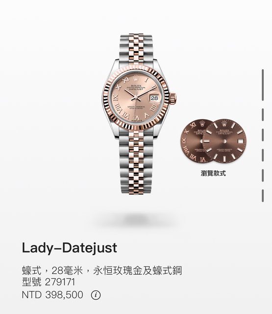 手錶型號:279171玫瑰金面五銖