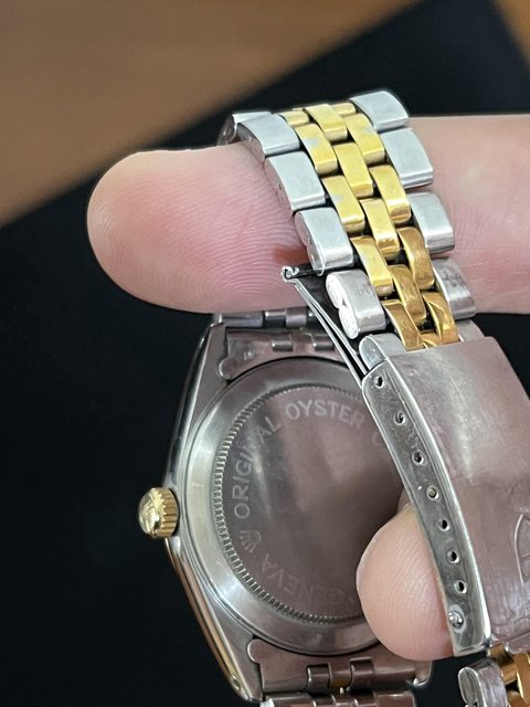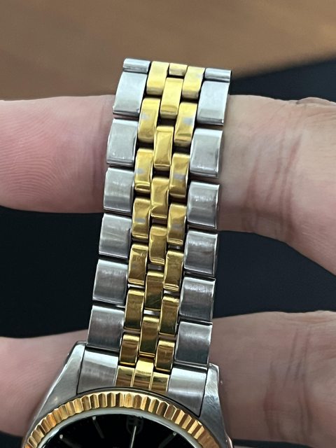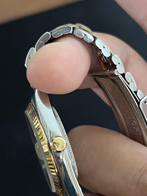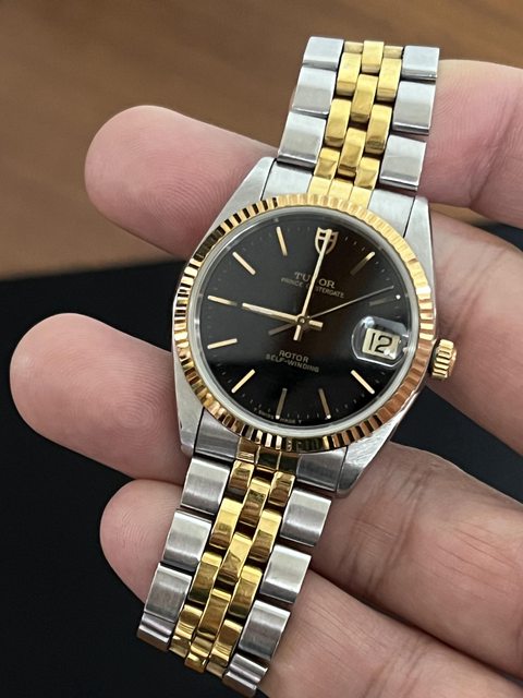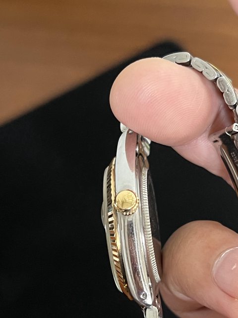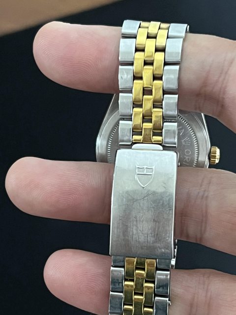 二手拍賣拍得(單錶、無盒單),2022年5月購入,大約2022年7月拿到林口的喬的鐘錶洗油,ETA2824機芯,加上帝舵魔改,洗油後每日約差2秒,外觀有使用痕跡,如果介意要省錢,可以自行拋光布拋光,要好看,可以到外面店家拋光,鏡面有些刮傷,確切年份不知(應該有30年),龍頭與錶蓋有勞力士的標誌,給店家外觀整理一下,孝敬長輩也算有心意,面交桃園龍潭,滿意再買沒問題,售價:33800元。