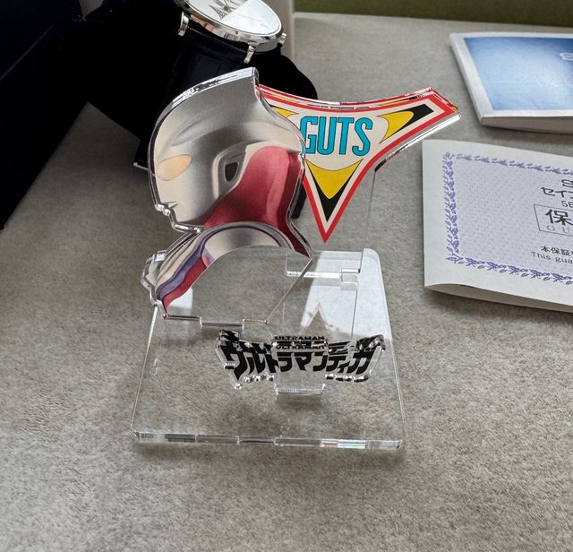 3.Seiko限定Ultraman聯名石英,日本發售限量300隻,蠻多細節的一隻聯名錶,原廠錶帶 、壓克力支架、盒單齊全近全新,要蒐藏或是平時配戴都很適合,售5000含運~