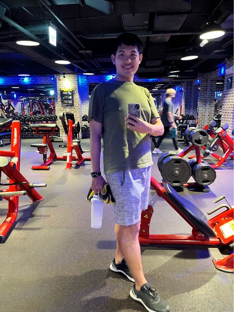 平常喜歡吃美食、旅遊,下班會到健身房運動